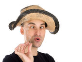 Człowiek robi śmieszne miny i grymas
