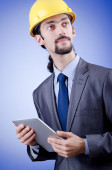 Zdjęcie "robotnik pracuje na tabletki" może być wykorzystywane do celów osobistych i komercyjnych zgodnie z warunkami zakupionej licencji Royalty-free. Obraz jest dostępny do pobrania w jakości wysokiej rozdzielczości do 5760x3840.