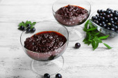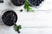 Smaczne porzeczki dżem z jagody na stole z bliska