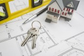 Zdjęcie "Nieruchomości Concept Paper modelu domu z kluczami przed białym niebieskim nadrukiem. Budynek ekologiczny. Widok z góry." może być wykorzystywane do celów osobistych i komercyjnych zgodnie z warunkami zakupionej licencji Royalty-free. Obraz jest dostępny do pobrania w jakości wysokiej rozdzielczości do 5760x3840.