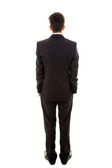 Pełna długość młody biznes człowiek stojący z rękoma nad