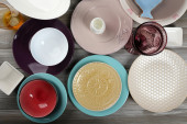 różne naczynia na drewnianym stole