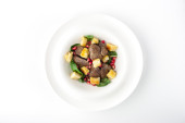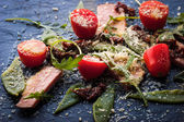 Wędzona szynka i rukola sałatka na białe płytki ceramiczne