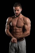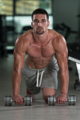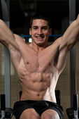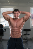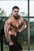 Niesamowite kulturysta pokazując jego mięśnie i pozowanie w siłowni