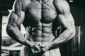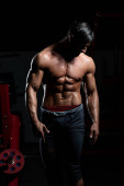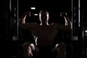 Człowiek w siłowni pokazano jego ciało dobrze wyszkolonych