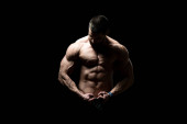 Zdjęcie "Człowiek w siłowni pokazano jego ciało dobrze wyszkolonych" może być wykorzystywane do celów osobistych i komercyjnych zgodnie z warunkami zakupionej licencji Royalty-free. Obraz jest dostępny do pobrania w jakości wysokiej rozdzielczości do 5760x3840.