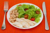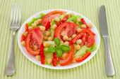 Sałatka jarzynowa z groszkiem na talerzu