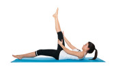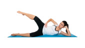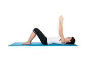 piękna młoda kobieta, wykonując na niebieski matowy