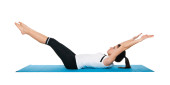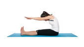 piękna młoda kobieta, wykonując na niebieski matowy