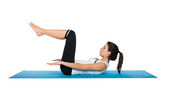 piękna młoda kobieta, wykonując na niebieski matowy