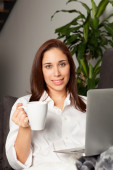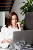Zdjęcie "Młoda kobieta korzystająca z laptopa w domu." może być wykorzystywane do celów osobistych i komercyjnych zgodnie z warunkami zakupionej licencji Royalty-free. Obraz jest dostępny do pobrania w jakości wysokiej rozdzielczości do 5760x3840.
