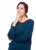 Zamyślony młoda dziewczyna z ręki na brodzie