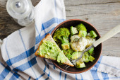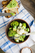 Zimowa sałatka jarzynowa z brokułów i kalafiora, Grzanka z