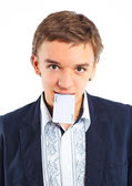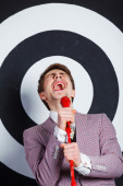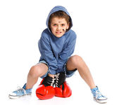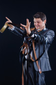 portret człowieka biznesu w czerwone Rękawice bokserskie