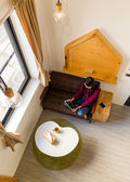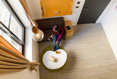 kobieta czyta książkę w domu