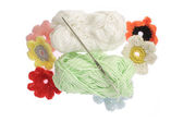 szary kłębek bawełny do robótek szydełkowych, dzianiny kwiat i kulki