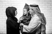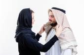 Portret atrakcyjna para arabski, ubrany sposób Bliskiego Wschodu.
