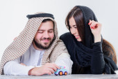 Portret atrakcyjna para arabski, ubrany sposób Bliskiego Wschodu.