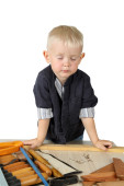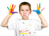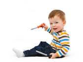 mały chłopiec z pędzel