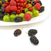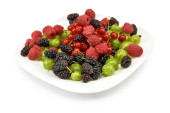 Czerwone i czarne jagody na talerzu.