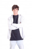 Zdjęcie "Nastoletni chłopiec pozowanie" może być wykorzystywane do celów osobistych i komercyjnych zgodnie z warunkami zakupionej licencji Royalty-free. Obraz jest dostępny do pobrania w jakości wysokiej rozdzielczości do 5760x3840.