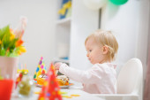 portret jeść rozmazany obchodzi pierwsze urodziny dziecka