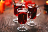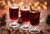 Grzane wino na drewnianym stole