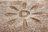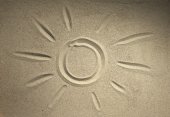 Zdjęcie słońca malowane na piaszczystej słońcem malowane na sa