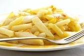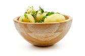 ziemniaki, przyozdobionym z koperkiem w brązowy ceramicznych danie