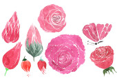 zestaw roślin elementy malowane akwarela kłamca - irys, Pączek, kW
