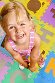 małe słodkie dziewczyny rozwiązywania puzzle alfabet