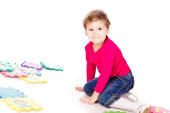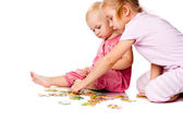 małe słodkie dziewczyny rozwiązywania puzzle alfabet