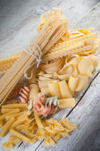 surowy makaron na tle drewna-makaron cruda su legno