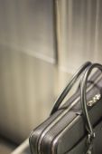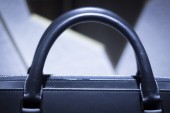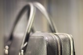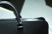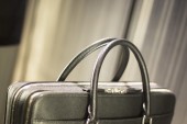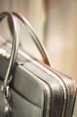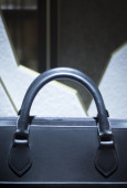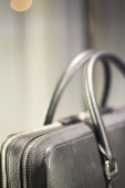Sklep okna człowiek aktówka skórzana torba