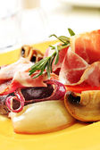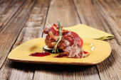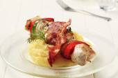 przycisk z pieczarkami i boczkiem na kij