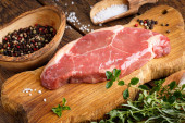 surowy porterhouse i polędwica z mieszanych ziół jałowca, pe