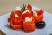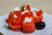 Łosoś przekąska z sera i oliwek