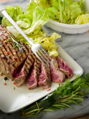 Zdjęcie "Sliced steak with balsamic vinegar and green salad" może być wykorzystywane do celów osobistych i komercyjnych zgodnie z warunkami zakupionej licencji Royalty-free. Obraz jest dostępny do pobrania w jakości wysokiej rozdzielczości do 5760x3840.
