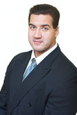 portret przystojny biznesmen uśmiechający się na białym tle