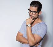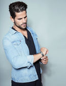 przystojny młody mężczyzna pozowanie w casual ubrania