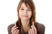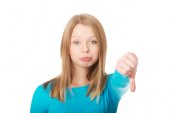 Młoda kobieta nastolatek niezadowolony Wyświetlono kciuk w dół