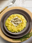 Zdjęcie "Saffron risotto ze złotem (Gualtiero Marchesi przepis)" może być wykorzystywane do celów osobistych i komercyjnych zgodnie z warunkami zakupionej licencji Royalty-free. Obraz jest dostępny do pobrania w jakości wysokiej rozdzielczości do 5760x3840.