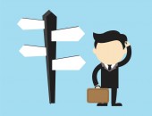 Dokonaj wyboru! Społeczne postaci 3d: biznesmen patrząc na skrzyżowaniu znak puste talerze. Nowa kolekcja stale rosnące ekspresyjny unikalne Wielodostępny obrazów. Koncepcja dla podejmowania decyzji