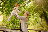 Zdjęcie "Piękna mama szczupła blondynka rzuca się śliczny uśmiechający się chłopca na tle fireweed trawy w lecie" może być wykorzystywane do celów osobistych i komercyjnych zgodnie z warunkami zakupionej licencji Royalty-free. Obraz jest dostępny do pobrania w jakości wysokiej rozdzielczości do 5760x3840.