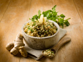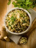 Barley risotto with sepia and beans