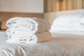 Zdjęcie "Zbliżenie czyste ręczniki i mydło w hotelu pokój higieny i gościnność koncepcja" może być wykorzystywane do celów osobistych i komercyjnych zgodnie z warunkami zakupionej licencji Royalty-free. Obraz jest dostępny do pobrania w jakości wysokiej rozdzielczości do 5760x3840.