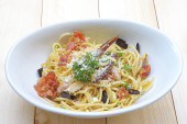 Asia gorące spaghetti suche papryczki boczek kiełbasa
