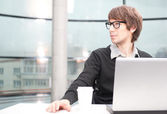 portret pewność działalności człowieka i jego współpracowników w biurze. mnóstwo lato