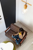 kobieta czyta książkę w domu