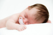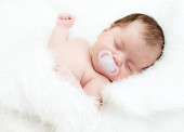 noworodka śpiącego na biały koc